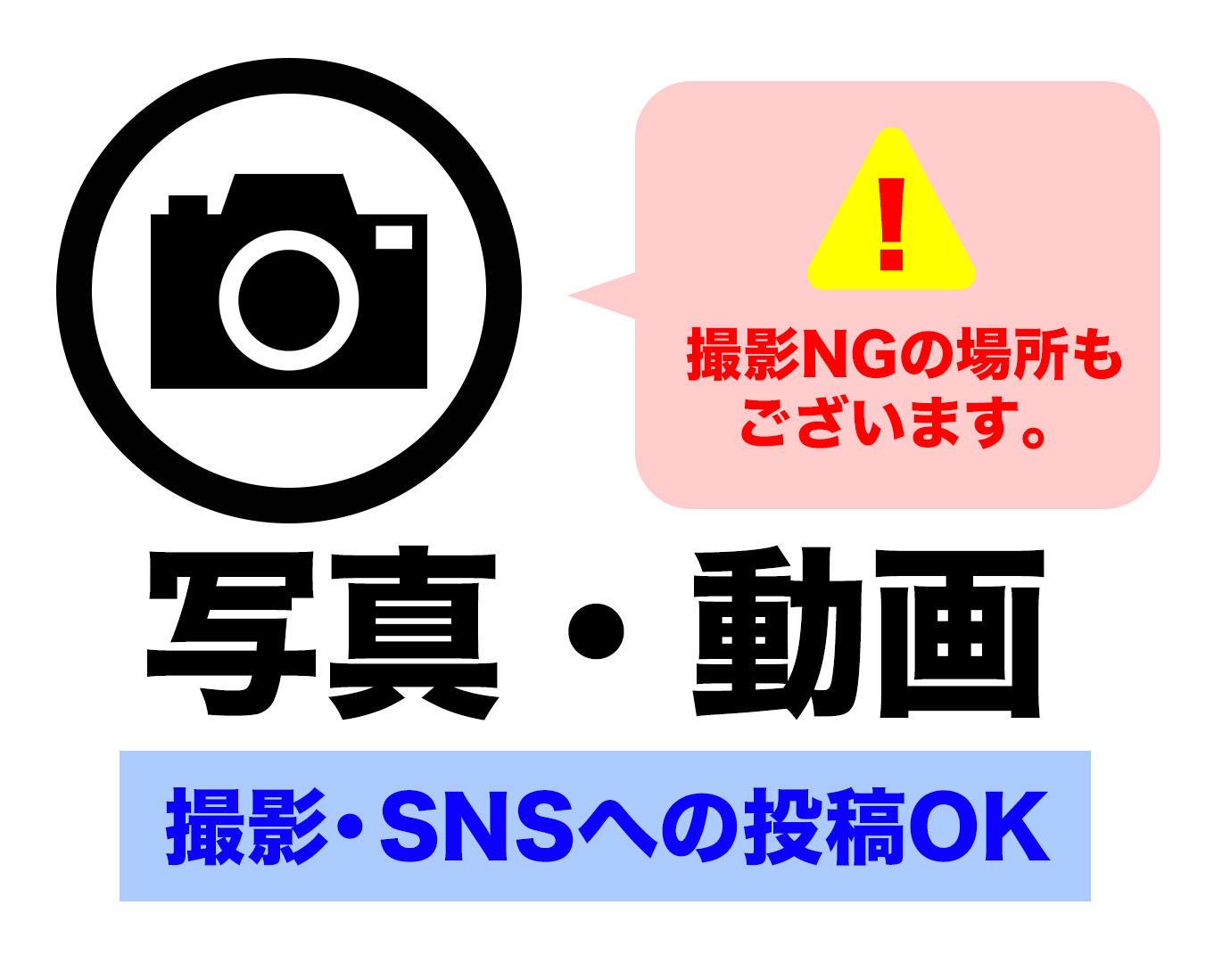 - 撮影OKの時間やエリアでも、事情により一部撮影禁止の時間やエリアを設ける場合がございます。