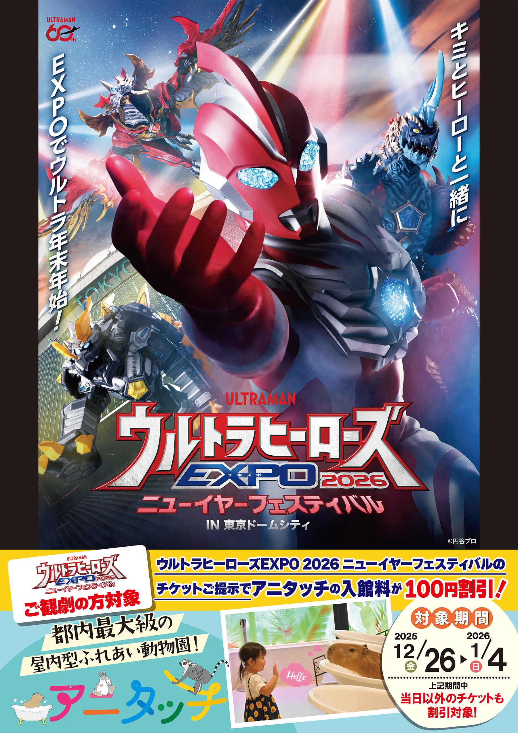「ウルトラヒーローズEXPO 2026 ニューイヤーフェスティバル」の開催を記念して、アニタッチ 東京ドームシティがお得に楽しめる割引特典を開催!